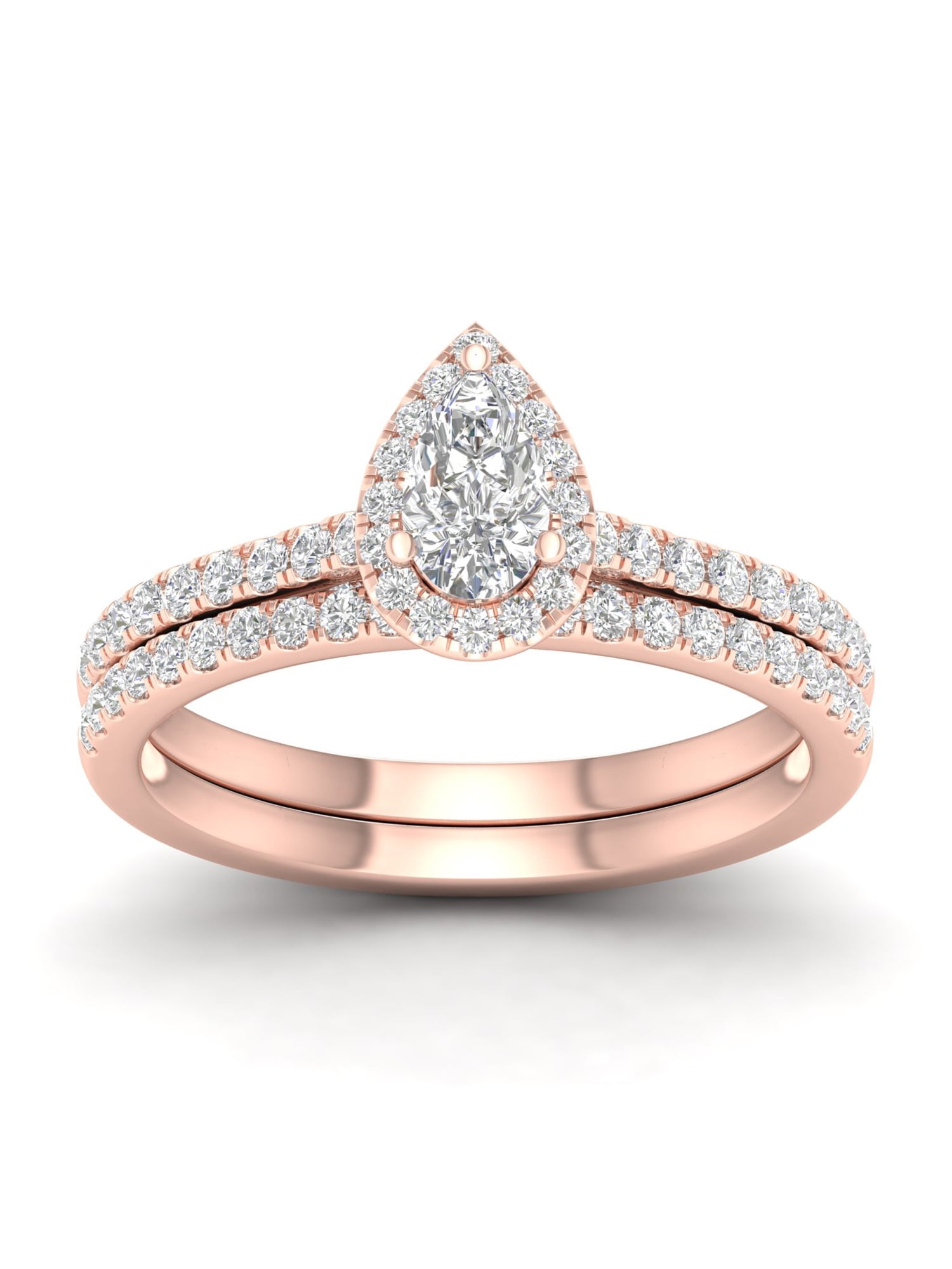 Imperial 10k White Gold 7 8ct Tdw Pear Cut Diamond Halo Bridal Ring Set Walmart Com